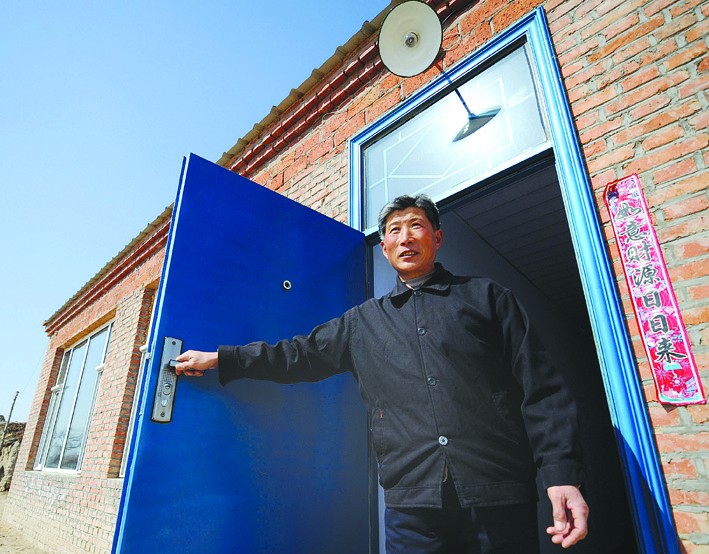 上圖:3月20日,吉林省乾安縣則字村農民李巖站在改造后的自家門前。2008年起,吉林省乾安縣把“ 泥草房改造安居工程”作為實踐科學發展觀的惠民工程來抓,目前已完成5900戶改造任務。