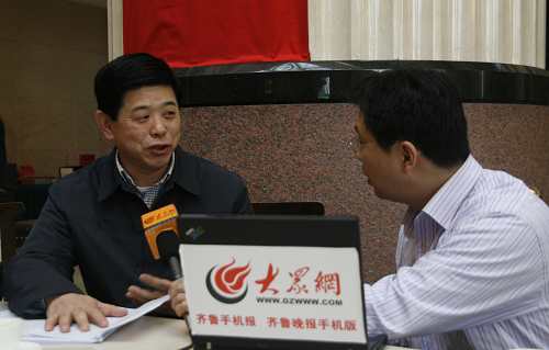 全國人大代表、山東省發改委主任費云良(左)在山東代表團駐地接受本網記者專訪