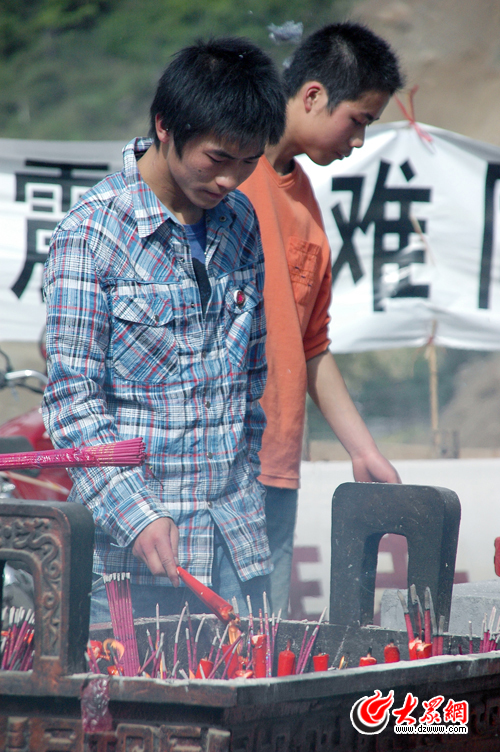 今天是農歷地震一周年,游人為遇難者燒香
