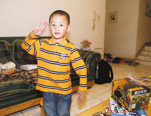 進了屋,郎錚就拆開玩具玩起來,拿著“沖鋒槍”拖著我們玩殺敵游戲,還拿著一個大兵的公仔叫著“解放軍、解放軍”。吳志瓊說:“這孩子現在天天嚷著要當解放軍。”