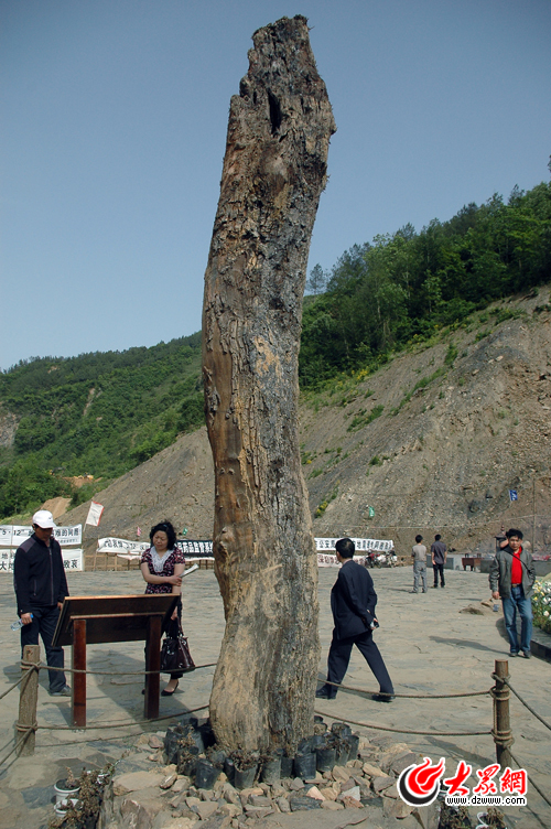 據(jù)推測,另一更神秘的木頭也有可能是從地下被“吐出來”的。這塊貌似樹木軀干的木頭如今被豎立在地震遺址愛心廣場上,高近4米,干莖有水桶那么粗,表面部分被碳化。公園講解員何雯告訴記者,有專家對(duì)這塊木頭曾做過鑒定,說這塊木頭大概是千年前的東西。“這里在上千年前曾經(jīng)發(fā)生過地震或泥石流,這塊木頭就是那時(shí)候被埋在地下的,這次地震發(fā)生時(shí),這塊木頭便從地下迸出來重建天日。