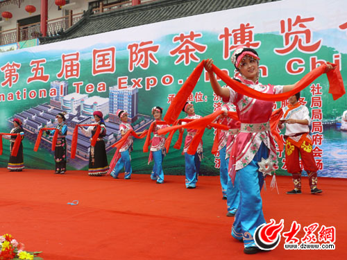 大眾網濟南5月22日訊 (記者 吳哲 楊博)今天一早,濟南第五屆國際茶博會尚未開幕,一場熱情的羌族歌舞便感染了在場的所有觀眾。為了答謝山東人民對北川茶農的幫助,北川縣人民政府和參展的北川茶企特意帶來了由北川羌族自治縣民間藝術團表演的這場節目。“我們來的最大目的就是把北川最深的敬意和感謝帶到山東來,感謝山東的人民對我們的幫助和支持。我替8萬的北川茶農感謝你們!”在現場,藝術團團長楊華武激動地告訴記者。
