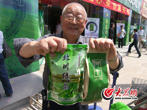 “人家這么遠運過來,不買點對不起人家”,刁老笑呵呵地收好茶葉對旁邊的人說,他說他平時每天都喝茶,一般喝綠茶和花茶,如今看到北川人遇到困難,山東人喝點茶就能幫他們,“喝茶都能救人,當然要喝北川茶!”刁老說。