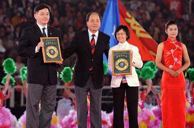 參賽紀(jì)念獎(jiǎng)的代表團(tuán)代表領(lǐng)獎(jiǎng)