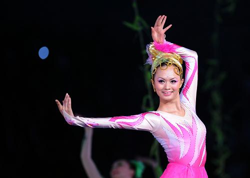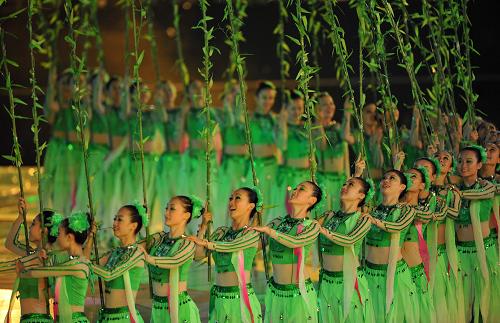 10月28日,第十一屆全國運(yùn)動(dòng)會(huì)閉幕式在山東濟(jì)南舉行。這是閉幕式上的歌舞表演《風(fēng)擺荷柳》。新華社記者朱崢攝