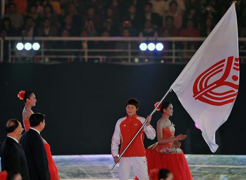 遼寧省運動員代表張慶鵬手舉中華人民共和國運動會會旗。