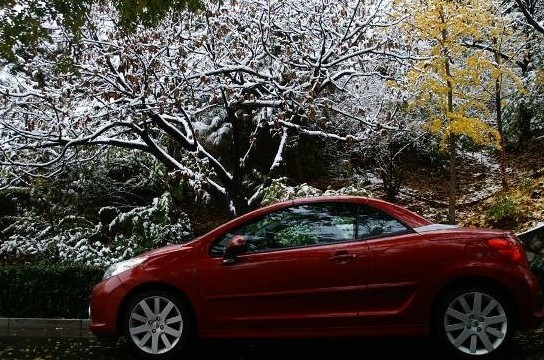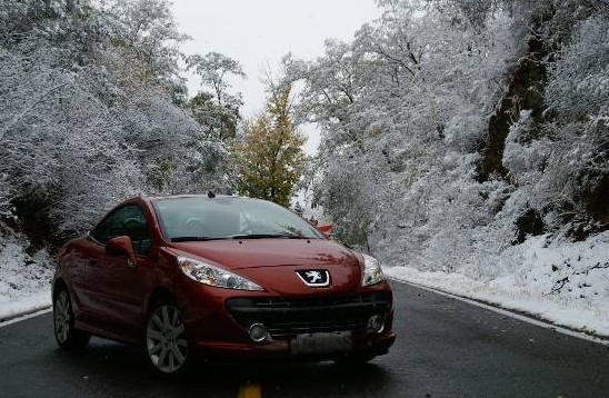 一鐵哥們剛買了輛紅色轎車,拉風得不得了,我非常眼饞,終于在我軟磨硬泡之下,哥們答應我在周末開一天。沒想到正好趕上今年第一場雪,爽的是不行不行的啊,嘿嘿~~~