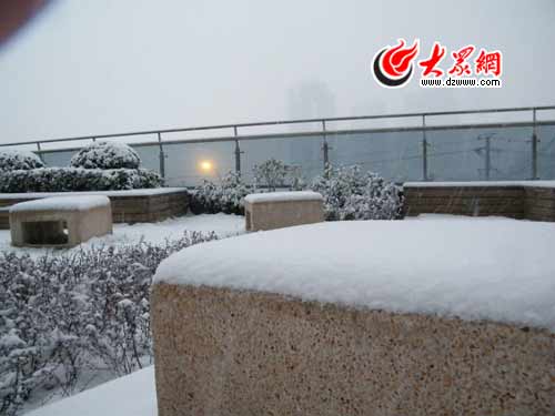 今早的濟南銀裝素裹,下了大半夜的雪落在地上全城皆白,積雪的地方足有十厘米厚。早上7時,記者在建設路南頭向北俯瞰濟南,整個泉城籠罩在白雪當中,對于期待已久的這場大雪,很多市民都表示出興奮,說下得及時。