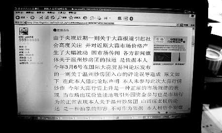 “如果有大資金運作,他必定要找當地的經紀人進行收購,如果在金鄉有一個人收購上萬噸大蒜,不可能沒人知道,肯定要引起轟動。這個說法,是網民“領航者A”今年3月份發的一個帖子,但最近他已經澄清,這只是一個夸張的形容。”對于媒體報道的裝卸工發大財的事情,金鄉縣委宣傳部的一位負責人笑稱,“我就是南店子村的,從沒聽說過。”