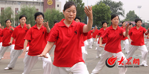 啟動(dòng)儀式上社區(qū)老年人表演太極拳