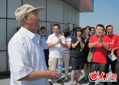 在眾人敬佩的目光中,82歲的王大爺征服了這座“濟南第一高樓”,順利爬上了49層高樓。