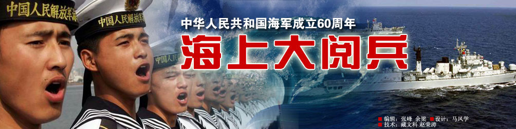 中國23日下午在青島附近黃海海域舉行海上閱兵,慶祝中國人民解放軍海軍誕生60周年。這是人民海軍歷史上...