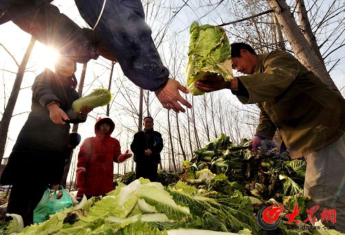 不少新鮮的菜葉也被菜農(nóng)忍痛剝掉。齊魯晚報(bào)記者 郭建政 攝