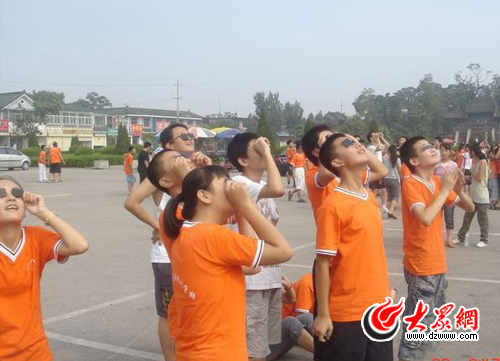 大眾網(wǎng)濟(jì)寧7月22日訊(記者 陳宏發(fā) 通訊員 朱斌) 500年一遇的日食奇觀引起了人們的極大觀看熱情,今早8時(shí),孟子故里鄒城市不少市民走出家門,來到孟廟廣場(chǎng)觀看這一天文盛宴。來自附近一學(xué)校更是組織學(xué)生集體來廣場(chǎng)觀看日食,希望能豐富學(xué)生的暑假生活,激發(fā)他們對(duì)天文知識(shí)的熱愛。圖為學(xué)生們帶著自制的“日食眼鏡”在孟廟廣場(chǎng)上看日食。