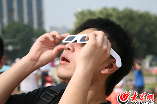 大眾網(wǎng)濟(jì)南7月22日訊 (記者 趙爾印 趙洪棟 燕雨 實(shí)習(xí)生 王磊)今天上午,為了讓市民更好地觀測(cè)日食天象,本網(wǎng)和生活日?qǐng)?bào)、雙達(dá)光電有限公司聯(lián)合向市民免費(fèi)發(fā)放了部分觀日鏡。而同時(shí),大眾網(wǎng)將全國(guó)各地拍攝的這一罕見天文奇觀統(tǒng)一發(fā)布,網(wǎng)友登陸大眾網(wǎng)即可閱盡各地日食美景,并能了解有關(guān)日食的各種常識(shí)。
