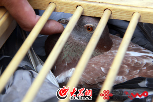 等待放飛的和平鴿,這只紅色羽毛鴿子被稱作祥云