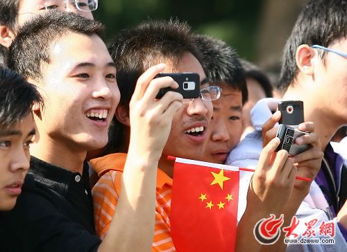 道路兩側熱情的市民。