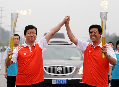 10月8日,十一運會志愿者形象大使徐本禹在傳遞火炬。當日,第十一屆全國運動會火炬傳遞活動在山東聊城進行。