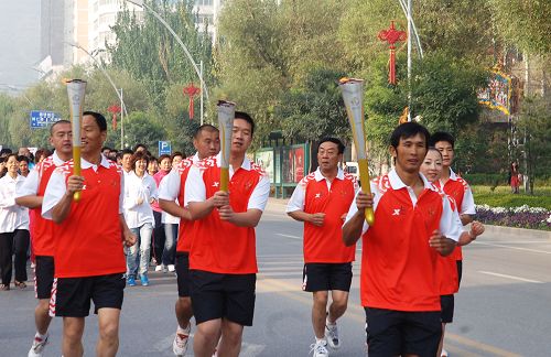 。笗r許,一名火種護衛者從火種燈中取出火種,點燃了青海省省長宋秀巖手中的全運會火炬。全場掌聲雷動,鼓樂喧天。緊接著,火炬從宋秀巖手中被依次傳遞給青海省體育局局長馮建平、青海省著名自行車運動員馬海軍。隨后,馬海軍依次點燃了其他四位火炬手的火炬。在青海省省委書記強衛宣布火炬傳遞活動正式開始后,五名火炬手高舉圣火與五名護跑手一起,帶領由青海省12家單位組成的12個護跑方隊繞新寧廣場一周,激情奔跑。最后,儀式在歡樂、熱烈的氣氛中結束。