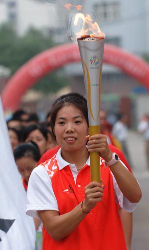 9月8日,安徽運動員代表陳亞玲手持火炬傳遞。