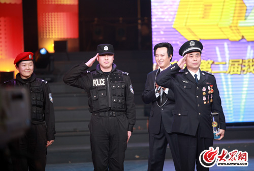 濟南特警代表為“十佳民警”鄭岐周(右)頒獎(曹亮 攝影報道)