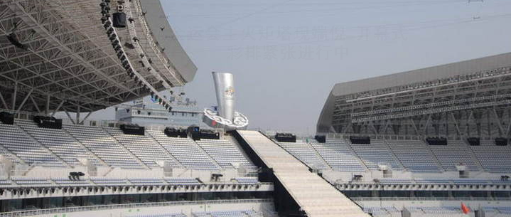 10月9日,2009年全運會開幕式彩排緊張進行中,全運會主火炬塔初現端倪。