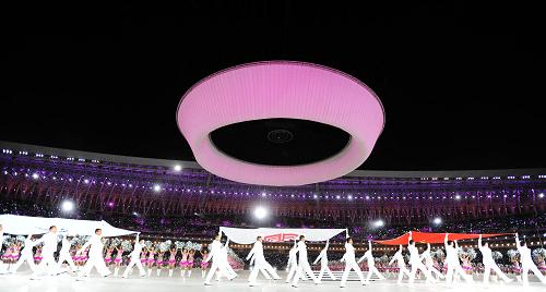 10月16日,中華人民共和國第十一屆運動會在濟南開幕。這是中華人民共和國國旗入場。