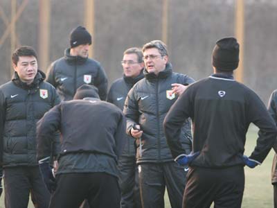 12月17日下午,魯能泰山新任主教練伊萬科維奇與兩位助手科季奇和萊科首次來到訓練場帶隊訓練。與前段時間訓練相比,今天魯能訓練有所改變,增加有球訓練內容。