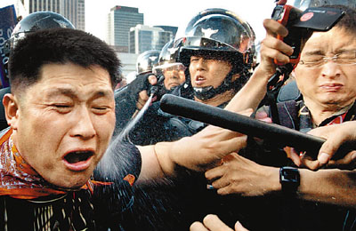 中新網(wǎng)5月31日電 韓國警方與支持已故總統(tǒng)盧武鉉的示威群眾30日發(fā)生沖突,警方徹夜進行強力驅(qū)離。