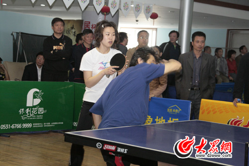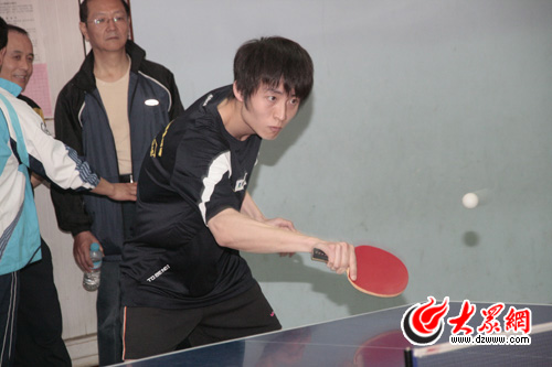 大眾網(wǎng)濟(jì)南4月26日訊(記者 劉寶才)“我就是為和老瓦過招來的,我相信自己能戰(zhàn)斗到最后。”齊魯手機(jī)報(bào)讀者隊(duì)的雷國鋒擦拭著自己心愛的球拍對記者說。今天上午,由大眾網(wǎng)主辦的“銀座家居”杯迎全運(yùn)乒乓球爭霸賽,在濟(jì)南泰山大廈拉開戰(zhàn)幕。記者了解到,獲得本次比賽優(yōu)勝的球隊(duì)將有機(jī)會挑戰(zhàn)乒壇“常青樹”瓦爾德內(nèi)爾。