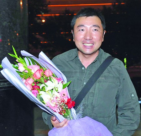 牛仔褲、休閑T恤,加上隨身攜帶的一套高爾夫球桿和一套羽毛球拍,15日晚8時40分,剛剛走下飛機的楊凌顯得精氣神兒十足。