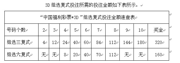 以上給大家介紹了3D組選投注方式的有關內容,當然還有其他的投注方式,以后的日子里我們還會學習有關3D投注的其他方式。