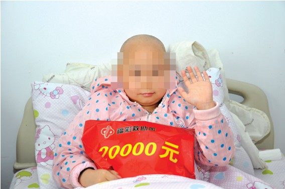 當我們到達病房時,一位光著頭的小女孩靜靜的躺在病床上,父母親陪在她身旁。小女孩名叫曉慶,今年7周歲,家住葉集老店村,上小學二年級。就在今年年初的時候,因一次感冒發燒驗血,查出患有白血病,短短幾個月,曉慶已經接受過幾次小化療,接下來她還將接受幾次大化療及后續治療。曉慶父母告訴我們,在治療這段時間,她最想回去上學。當福彩中心領導讓曉慶好好配合醫生治病,治好病就可以重新回學校的時候,曉慶眼淚直在眼眶打轉,神情透露著堅強。