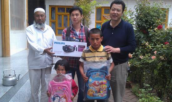 7月6日下午,深圳福彩中心、青海福彩中心及媒體代表一行來循化縣查汗都斯鄉看望來深建設者的家人,為他們帶去了錄音機、保溫杯、書包等禮物。馬國祥夫妻倆來深打工已經4年多了,除了每個月寄錢回家,一次也沒有回去,家里有兩個小孩,兒子10歲,女兒5歲半,由爺爺奶奶照顧。當深圳福彩中心工作人員播放馬國祥在深圳工作的視頻及牽掛表白時,老人眼睛濕潤了,兒子很害羞,在記憶中搜索著父親的形象,女兒出生沒多久父親就不在身邊了,所以對父親幾乎沒有印象,一家人圍坐在電腦旁,眼睛緊緊盯著至親的人的畫面,看了一遍又一遍,思念之情寫滿臉上。當記者問馬國祥的兒子有什么話想對父母說時,小男孩一臉靦腆,怯怯地說:“爸爸媽媽,我想你們,快回來。”