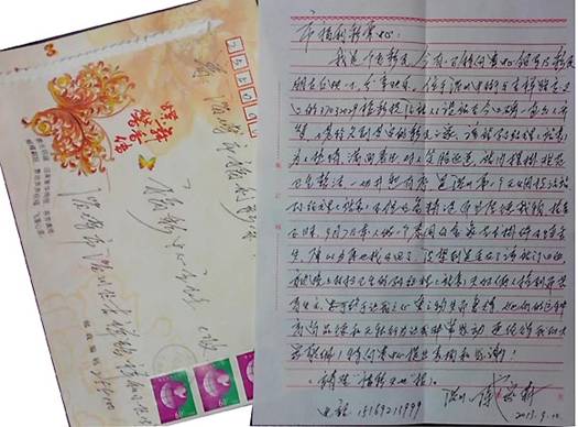 戚先生寄到淄博市福彩中心的感謝信