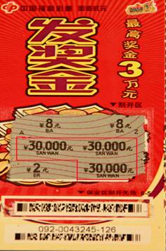 西城西營(yíng)村福彩第37050721號(hào)投注站的彩友劉女士到現(xiàn)在還感覺(jué)著像做夢(mèng)一樣,劉女士周末在西營(yíng)附近的水果批發(fā)市場(chǎng)買(mǎi)水果,回來(lái)的時(shí)候路過(guò)福彩投注站。像往常一樣進(jìn)去打算買(mǎi)上兩注雙色球,在投注站里看到福彩的“樂(lè)駕凱美瑞”活動(dòng)的海報(bào),有些心動(dòng)的她就刮了三張“發(fā)獎(jiǎng)金”,中了八元錢(qián),劉女士又換了四張,又中了2元,劉女士再次換了一張發(fā)獎(jiǎng)金,驚喜就出現(xiàn)在這張彩票中,隨著刮開(kāi)區(qū)的三個(gè)“30000元”的出現(xiàn),劉女士成為了進(jìn)入東營(yíng)福彩刮刮樂(lè)“樂(lè)駕凱美瑞”獎(jiǎng)上獎(jiǎng)活動(dòng)的第二位入圍彩友。