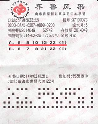 2月26日,齊魯風(fēng)采23選5游戲第2014049期開(kāi)獎(jiǎng),當(dāng)期僅開(kāi)出1注一等獎(jiǎng),被威海市彩友斬獲。該幸運(yùn)彩友在位于世昌大道122號(hào)的37100073號(hào)投注站采用機(jī)選單式的投注方式中得23選5一等獎(jiǎng)1注,單注獎(jiǎng)金達(dá)到38346元,讓人不得不羨慕他如此好的運(yùn)氣。