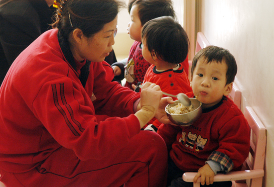 在社會福利院工作人員精心照料下,健康成長的孩子