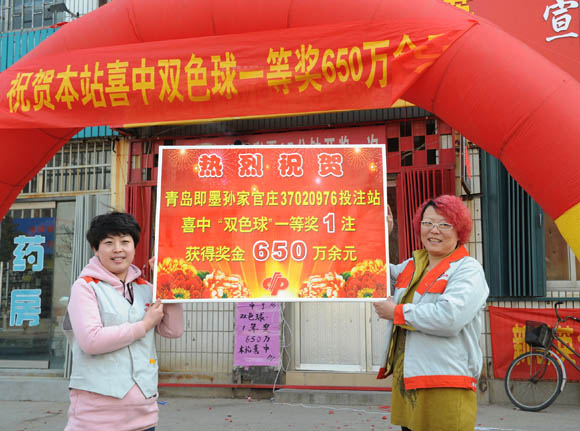 近日,島城彩市春風(fēng)送喜、“獎(jiǎng)花”遍開(kāi)。在剛剛過(guò)去的前兩月中,島城“雙色球”和“七樂(lè)彩”兩個(gè)玩法已累計(jì)中出5個(gè)高成色頭獎(jiǎng)。3月4日晚,在“雙色球”第2014024期搖獎(jiǎng)中,島城再收1注高達(dá)650萬(wàn)余元的頭獎(jiǎng)。得知站內(nèi)育出“金花”,中獎(jiǎng)?wù)句N售員王紅雷風(fēng)風(fēng)火火地舉行了一個(gè)“升級(jí)版”的慶賀儀式。
