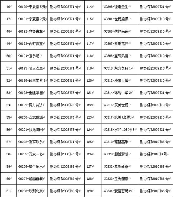 自2014年4月15日24時起,全國停止銷售以下136款即開型福利彩票。