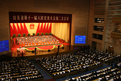 山東省十一屆人大二次會議于2009年2月13日上午9時在山東會堂開幕。圖為大會現場。(大眾網攝影記者劉水清報道)