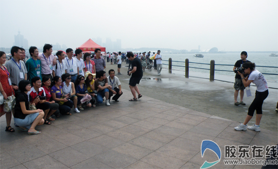 膠東在線網(wǎng)8月26日訊(特派記者 趙慶欣)26日,第五屆中國網(wǎng)絡(luò)媒體山東行采訪團來到青島最美的前海一線,漫步八大關(guān)游花石樓,沿木棧道觀海景,看五月的風(fēng),一路走來不論是美麗的景色還是眾多游覽拍照的游客都讓采訪團的記者們驚嘆不已。記者了解到,今年上半年青島接待旅游總?cè)藬?shù)1723.48萬人次,實現(xiàn)旅游總收入204.82億元,同比分別增長12.90%和13.04%。 漫步在木棧道,吹著涼爽的海風(fēng),網(wǎng)絡(luò)媒體山東行的采訪團陶醉在這美麗的前海一線。記者看到有不下幾十對情侶們都在海邊拍結(jié)婚照。工作人員告訴記者,青島的海邊特別美,幾乎所有的婚慶公司都選擇在海邊為新人拍外景,正值七夕,更是吸引了不少來自北京、上海等省內(nèi)外的情侶們來此拍照。 來到青島市區(qū)東部景區(qū)標(biāo)志性建筑——五月的風(fēng)前,記者們都迫不及待地拍照留念。據(jù)介紹,五月的風(fēng)是座落在青島“五四廣場”的標(biāo)志性雕塑,高達30米,直徑27米,重達500余噸,為我國目前最大的鋼質(zhì)城市雕塑。該雕塑以青島作為“五四運動”的導(dǎo)火索這一主題充分展示了島城的歷史足跡,深涵著摧人向上的濃厚意蘊。雕塑取材于鋼板,并輔以火紅色的外層噴涂,其造型采用螺旋向上的鋼板結(jié)構(gòu)組合,以洗練的手法、簡潔的線條和厚重的質(zhì)感,表現(xiàn)出騰空而起的“勁風(fēng)”形象,給人以“力”的震撼。雕塑整體與浩瀚的大海和典雅的園林融為一體,成為“五四廣場”的靈魂。