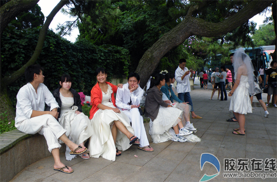 新人們在排隊拍照 |