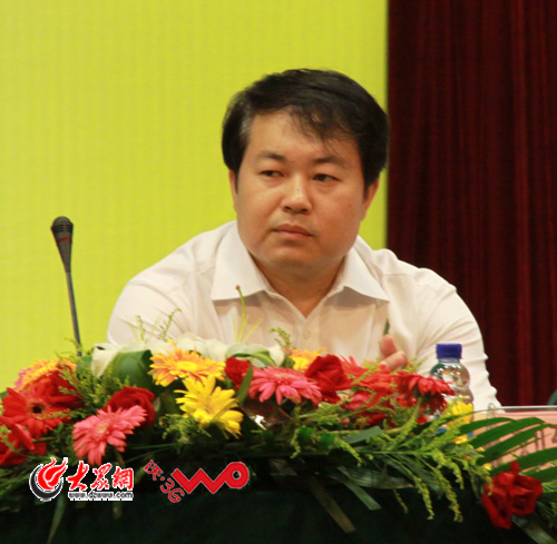 大眾網8月21日訊 第五屆山東網絡媒體山東行今天上午在濟南正式啟動,國內40余家主流網媒體共80多名記者參加活動。圖為山東省網絡文化辦公室主任劉致福出席啟動儀式。