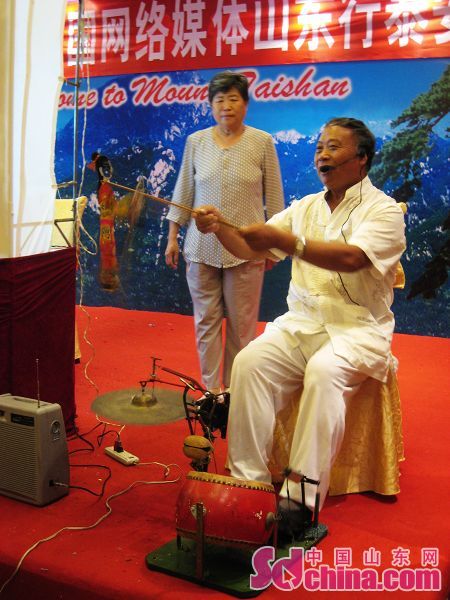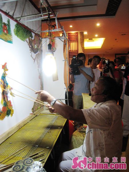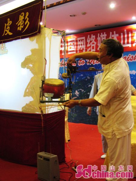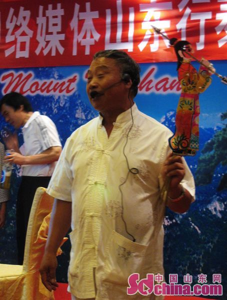 22日,第五屆網絡媒體山東行記者采訪團在泰安采訪,期間,記者們有幸觀看到了由非物質文化遺產傳承人范正安老先生表演的“十不閑”泰山皮影戲。