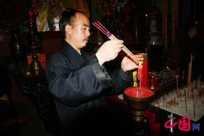 碧霞祠主持點香祈福國泰民安