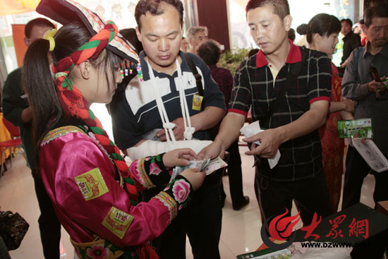 北川茶企員工正為購茶者開據購買收據