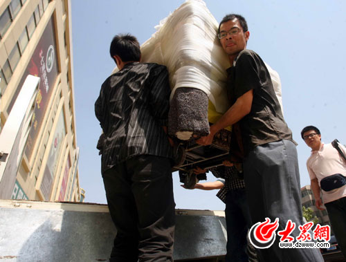 今天下午2點,經過2個多小時的行程,由濰坊的李濱先生提供的兩個奧運缶運抵濟南七里堡茶城。
