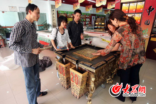 孫小姐是七里堡茶城的一名工作人員。她對記者說,“奧運的時候,我由于工作比較忙而沒有去北京參加奧運會,現在奧運缶運到濟南來了,我今天非常激動地見到了真正的奧運缶。這次,北川茶愛心推介會我們企業也參加了。我作為一名普通的銷售人員,也能為北川茶農做點貢獻。”李女士在七里堡茶城經營著一家門店,這次“北川茶愛心推介會”她主動找到大眾網要提供免費攤位。李女士告訴記者說,“奧運缶來了,北川茶來了,我也要盡自己的一點微薄之力為北川茶農和人民做點事情。”