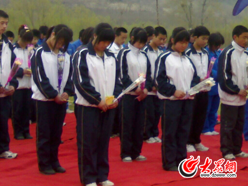 大眾網(wǎng)濟(jì)南4月3日訊 (大眾網(wǎng)-齊魯手機(jī)報(bào)記者 劉水清 趙爾印)“天堂的朋友,你還好嗎?在那個(gè)世界里,你生活得快樂(lè)嗎?”明天就是清明節(jié),距離“5.12汶川大地震”過(guò)去已經(jīng)10個(gè)月又22天。4月3日上午,北川縣職業(yè)中學(xué)在山東復(fù)課的96名師生來(lái)到山東福壽園文化陵園,緬懷在地震中遇難的同胞,告訴天堂之上的他們:天堂的朋友啊,安息吧,我們一定會(huì)帶著你的夢(mèng)想走好每一步!